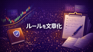 損切りとストップロスの考え方、リスクを減らして利益を伸ばす工夫、テクニカル指標に振り回されないためのスタンス、ニュースや指標に対するマイルール、イベント日の事後検証、自分のトレードルールを文章化する方法などを扱っています。
