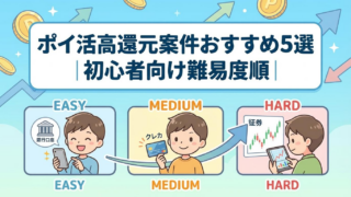 ポイ活 ポイ活高還元案件おすすめ5選|初心者向けに難易度順で解説 ポイ活高還元案件の中から、初心者でも取り組みやすく、失敗しにくいおすすめ案件を難易度順でまとめました。ポイ活を始めてみたいけれど、どの高還元案件から手をつければいいのか迷いますよね。クレカ案件はお得そうだけど少し不安。証券口座案件は気になる... ポイ活高還元案件
